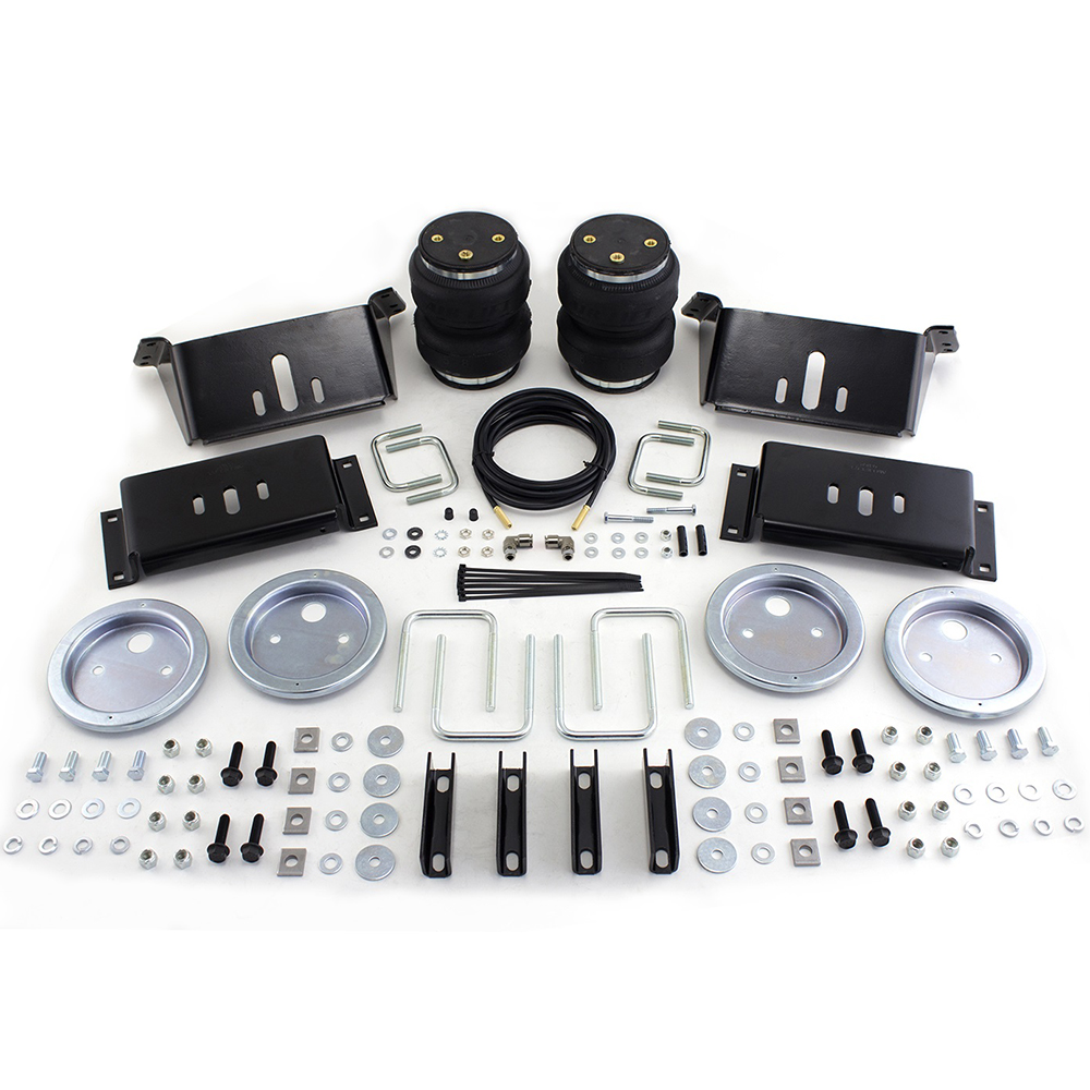 Installation is fairly simple and straight forward. The air suspension load leveling kit includes 2 air springs, air lines, mount brackets, fittings and all needed hardware for installation. Numerous air compressor systems available and sold separately.
