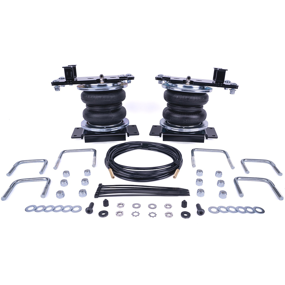 Installation is fairly simple and straight forward. The air suspension load leveling kit includes 2 air springs, air lines, mount brackets, fittings and all needed hardware for installation. Numerous air compressor systems available and sold separately.