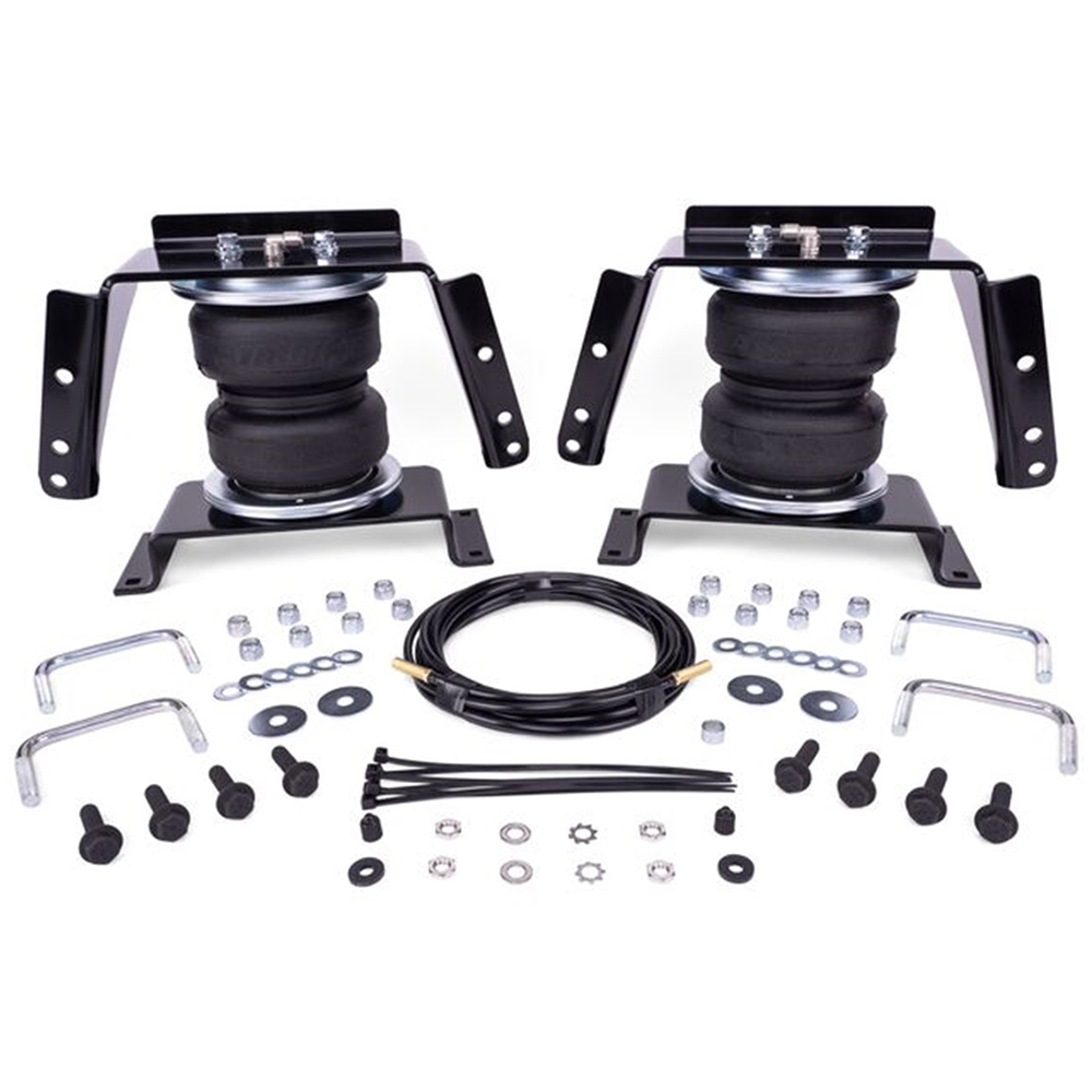 Installation is fairly simple and straight forward. The air suspension load leveling kit includes 2 air springs, air lines, mount brackets, fittings and all needed hardware for installation. Numerous air compressor systems available and sold separately.