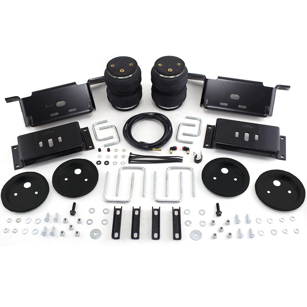 Installation is fairly simple and straight forward. The air suspension load leveling kit includes 2 air springs, air lines, mount brackets, fittings and all needed hardware for installation. Numerous air compressor systems available and sold separately.