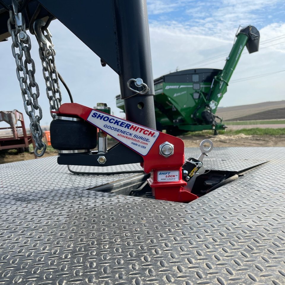 - Offset Extension Gooseneck Air Ride Hitch System Includes: Complete Shocker Gooseneck Surge® air hitch with built in air ride system, replacement inner tube stem & 30,000 lb Shift Lock™ gooseneck coupler for 2-5/16″ ball.