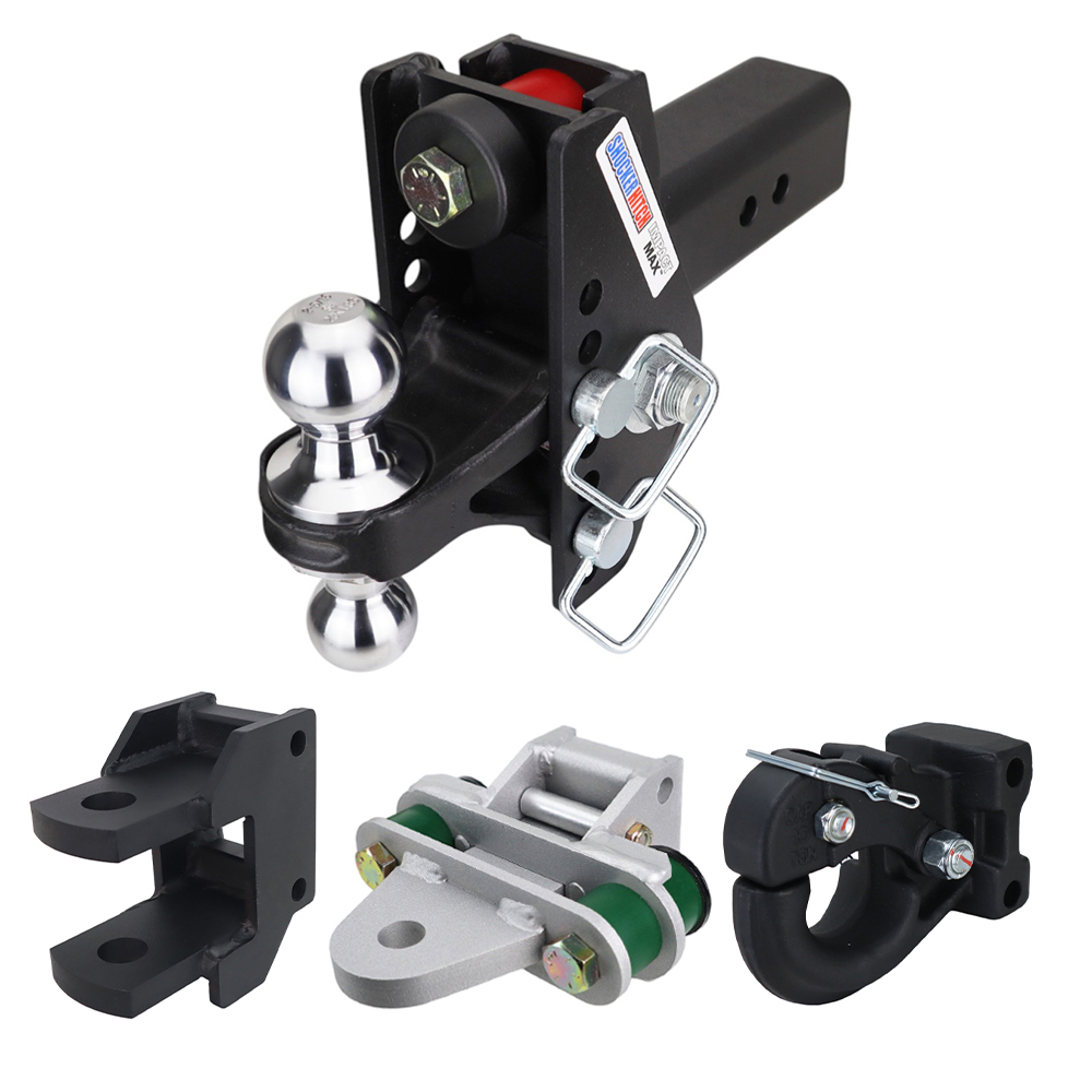 Get a heavy-duty towing solution for around the farm or ranch. This HD farm towing package features a dual cushioned, shock absorbing Impact Max hitch that filters the bumps, jerks and tugs through the dual cushions, creating a smoother towing experience. Makes it easier on you, your trailer, equipment, and cargo. The kit has 4 mount attachments for quick hookup and a smoother ride around the farm with almost any trailer. Featuring a combo ball, clevis, quad cushioned drawbar & pintle hook attachments. The Shocker HD Impact Max hitch and Farm Mount kit provides every mount you need to hook up to farm equipment, cultivators, fertilizer spreaders, anhydrous tanks, bailers, augers, sprayers, and other agriculture-related equipment, trailers, and more. The black Shocker Impact Max cushioned hitch ball mount provides versatility and a smoother towing experience than a solid ball mount. The Impact series ball mount has built-in adjustability and maximum versatility with 7 adjustment holes for your towing needs for pulling farm equipment, trailers, contractor & heavy-duty trailer towing applications. This Cushion hitch farm package is the best thing you can have sitting on the farm, ready to give you a smoother, safer day. The Impact Max comes with impact resistant super-durable textured matte black powder-coated finish on the base frame for long-lasting life and a sleek finish. You can use the Black Impact adjustable drop cushioned hitch mount; however, you need to for tons of versatility with quick wagon or trailer hookup and disconnect. This kit includes a welded black powder-coat combo ball mount for standard trailers, a clevis pin mount, an adjustable pintle hook, and a standard or quad-cushioned drawbar mount. The Shocker Impact Max cushion hitch with black combo ball mount is designed for heavy-duty use to cushion your towing experience. The dual bump cushion design is rated up to 20,000 lbs. It has 7″ of height adjustment range from 4″ of rise to 6-1/2″ of drop backed by a 20,000 lbs tow rating capacity and 2,000 lbs tongue weight, drop and rise depends on the mount attachment updated.