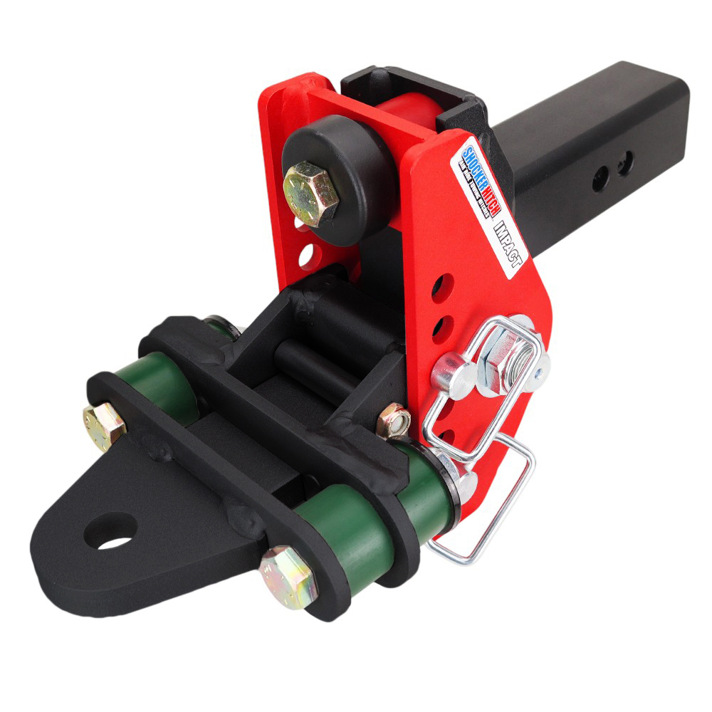 - Includes complete adjustable Shocker Impact cushion hitch with built-in bump cushions, adjustable cushion draw bar attachment with 4 bump cushions & 2 d-handle mount pins attachment pins with clips.