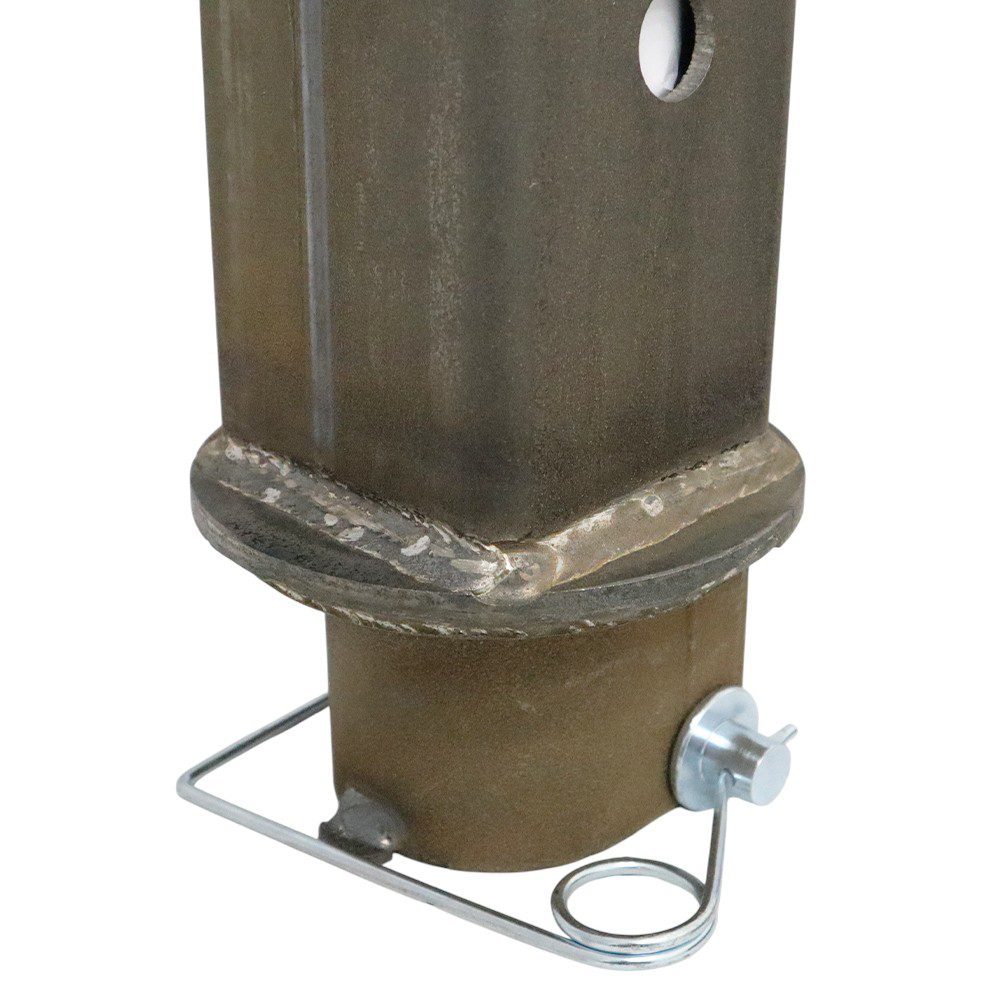 - Outer Sleeve Options: Available with a 4.5″ OD sleeve with 4″ ID square or a 5″ OD sleeve with 4.5″ ID square. Outer sleeve measures 20″ tall and features a reinforced collar with two set bolts and jam nuts along with through pin with clip.