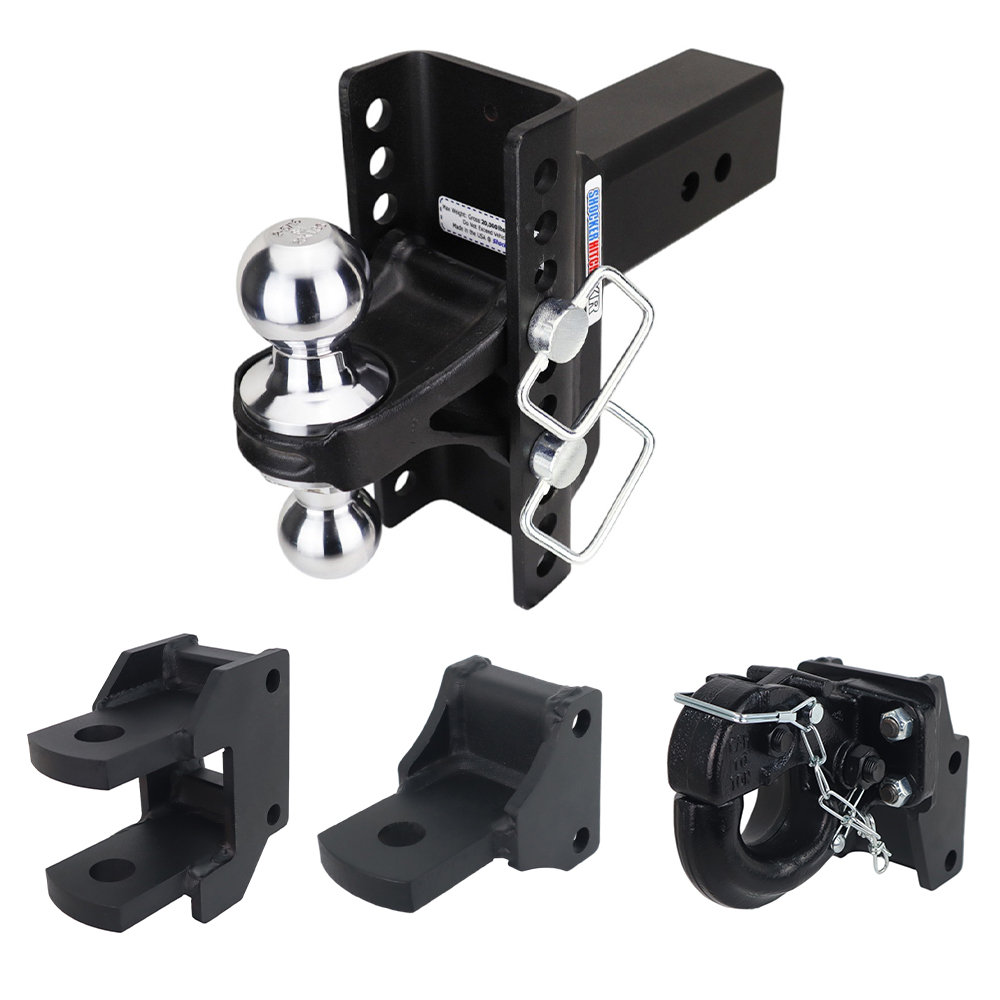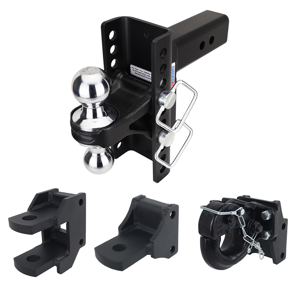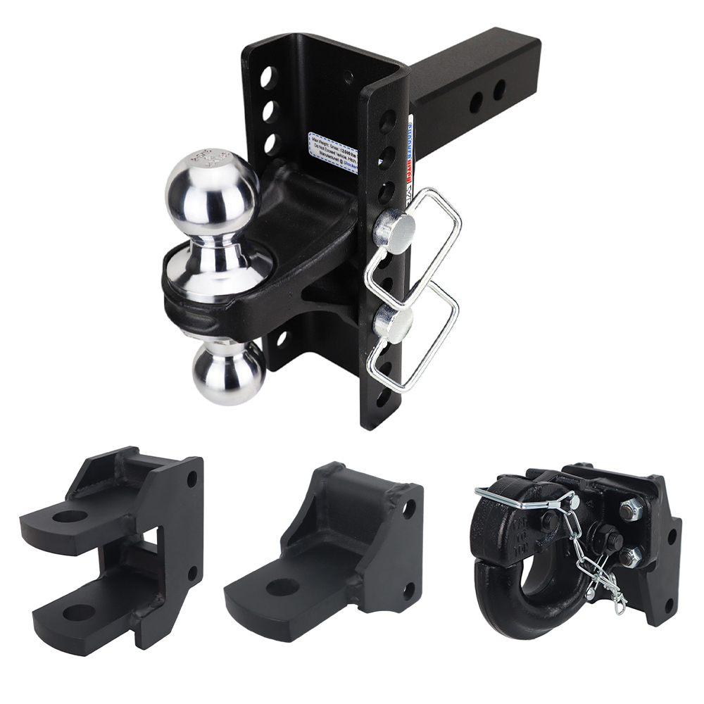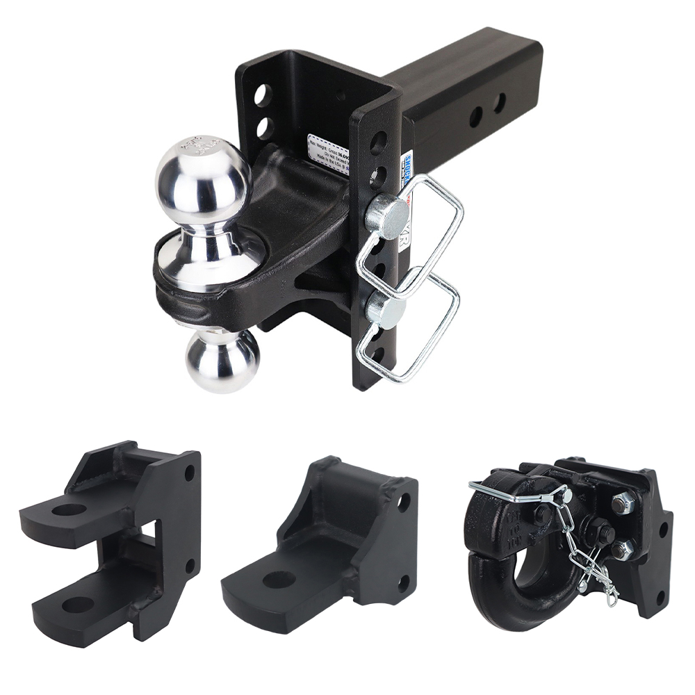 - Adjustable Combo Ball: Combo adjustable multi-ball mount has 2″ hitch ball & 2 5/16″ hitch ball with 4″ rise to 4″ drop. (2-5/16″ ball is rated at 20,000 lbs & 2″ ball is rated at 10,000 lbs.) (Add 2″ Drop/Rise for 10 Hole Frame)
