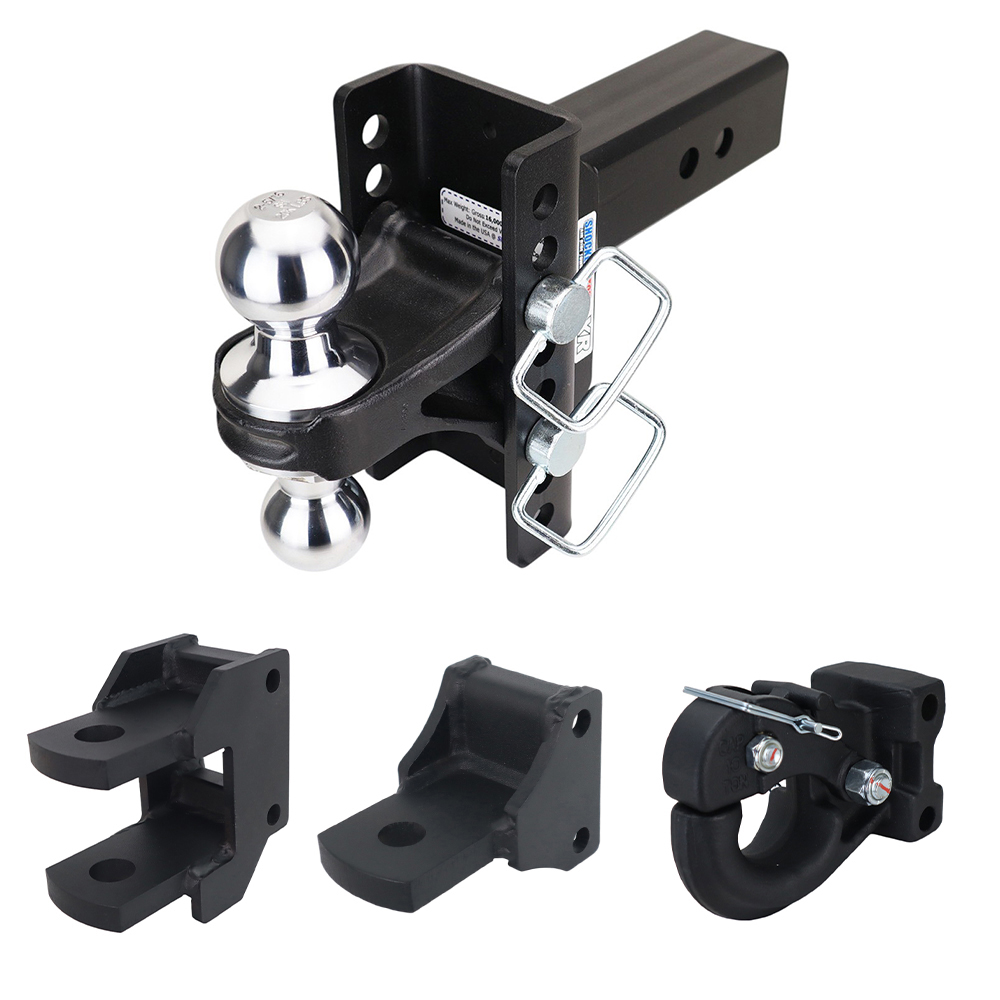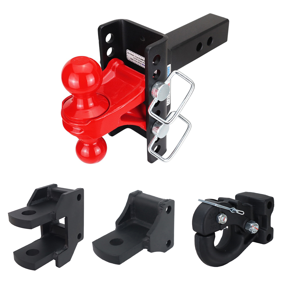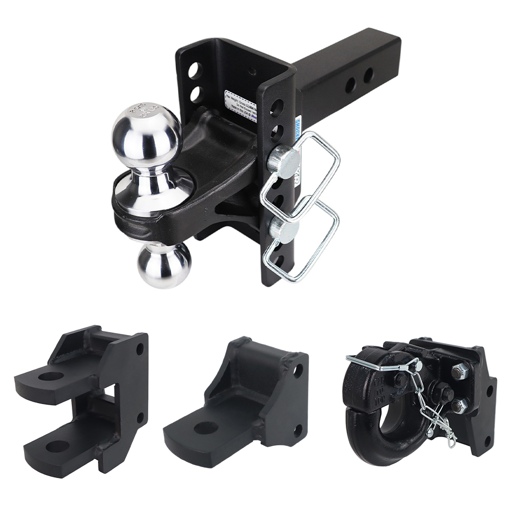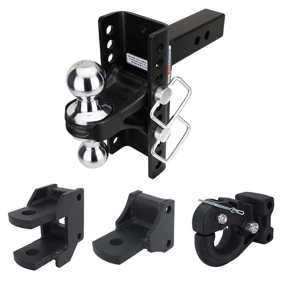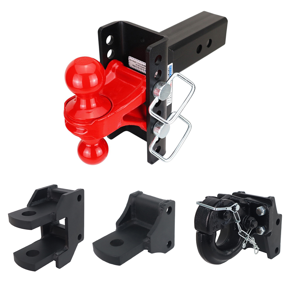 - Adjustable Combo Ball: Combo adjustable multi-ball mount has 2″ hitch ball & 2 5/16″ hitch ball with 4″ rise to 4″ drop. (2-5/16″ ball is rated at 20,000 lbs & 2″ ball is rated at 10,000 lbs.) (Add 2″ Drop/Rise for 10 Hole Frame)