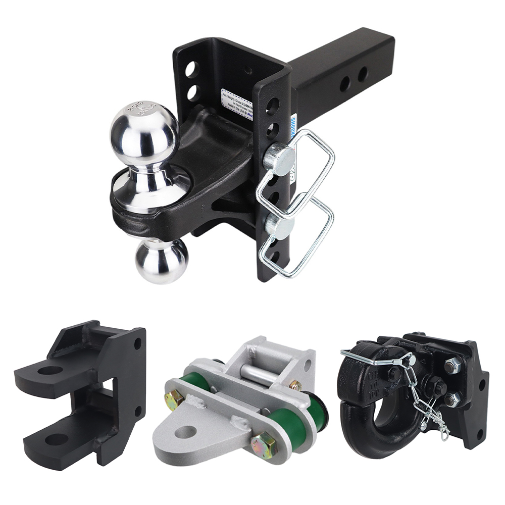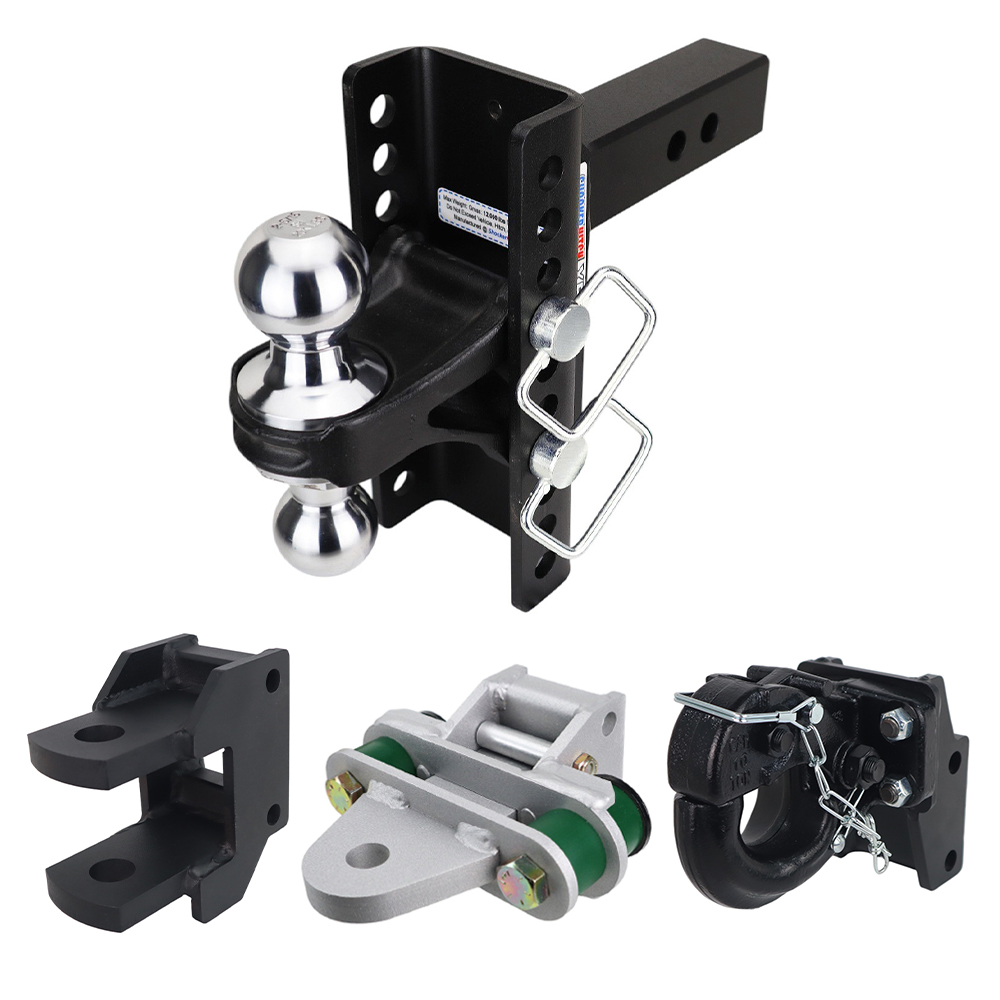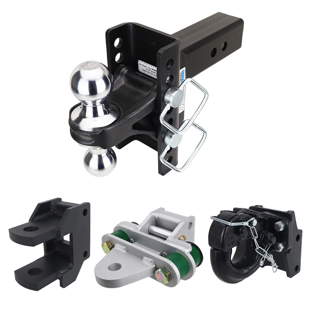 - All In One Deluxe Package: Includes combo ball, pintle hook, 4 cushion drawbar with 1″ hole, clevis pin attachment with 1-1/4″ holes for quick hookup on a variety of trailers.